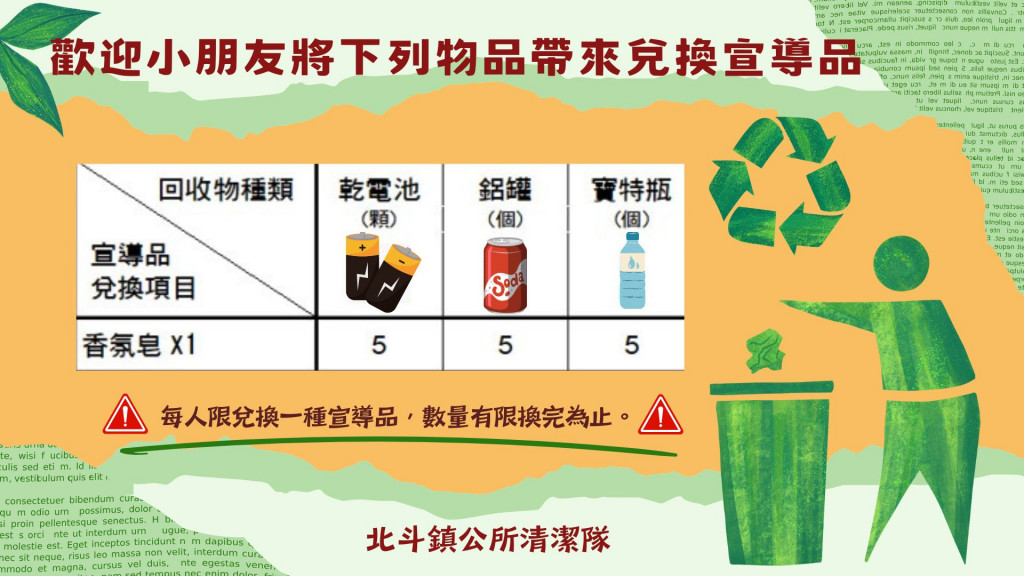 ✨北斗鎮公所清潔隊:資源回收宣導&兌換活動。