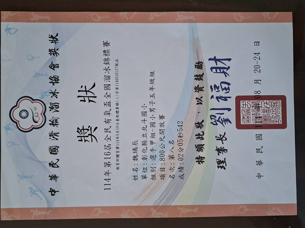 恭喜六丙魏瑀辰參加114年第16屆全民有氧全國溜冰錦標賽榮獲第八名