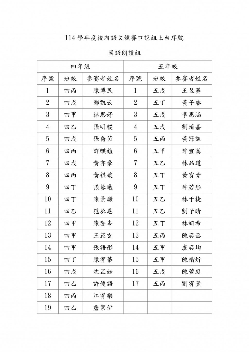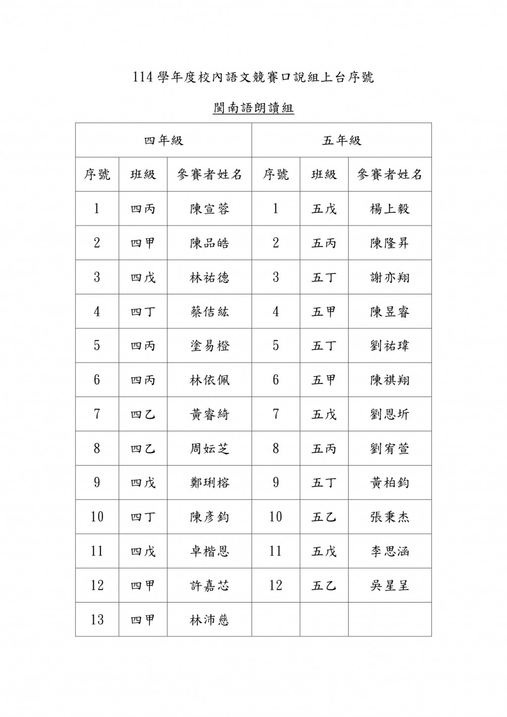 請四、五年級導師協助提醒 參加國語朗讀及台語朗讀的學生