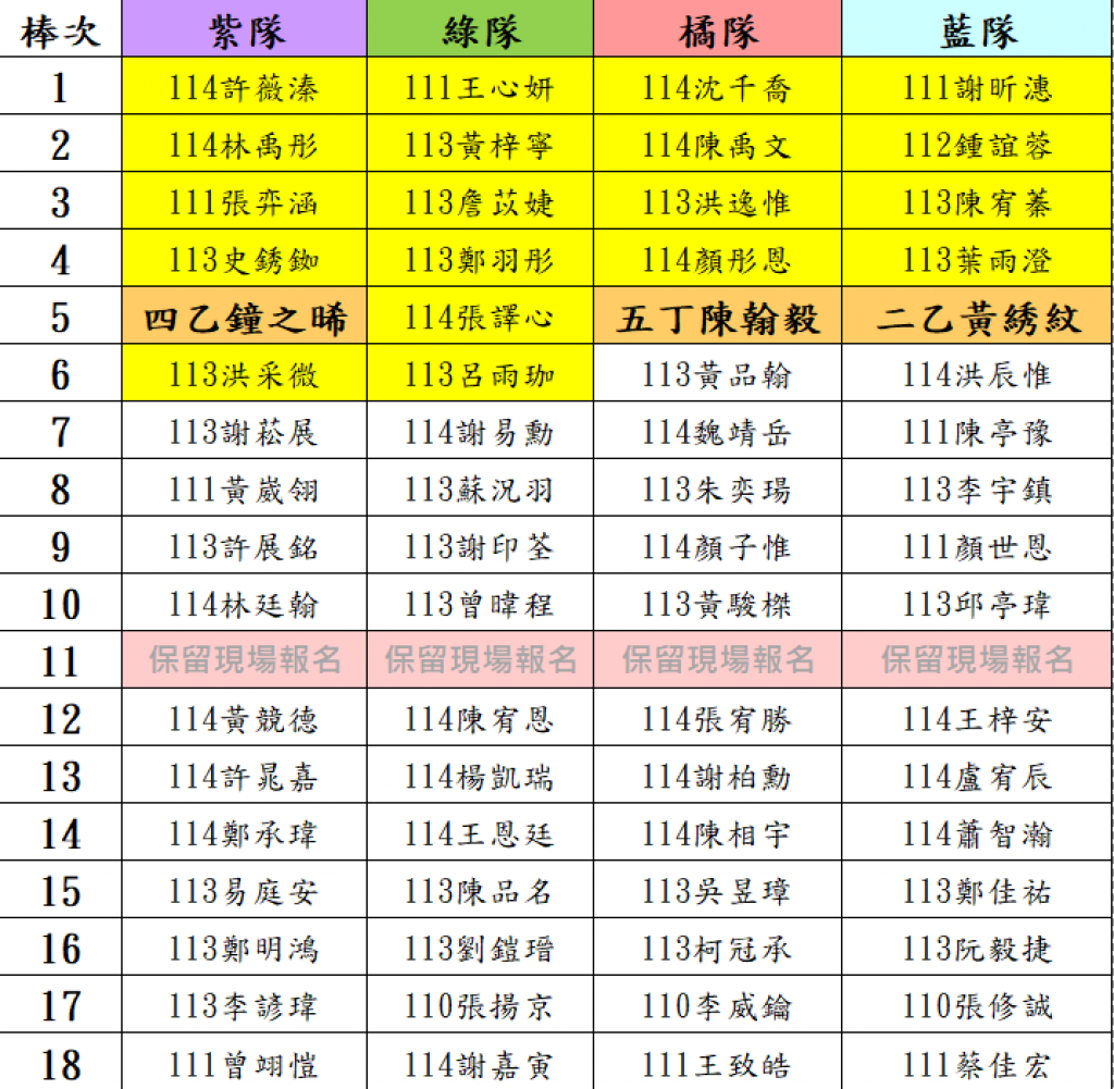 現場報名者之分隊將 以抽籤方式決定。