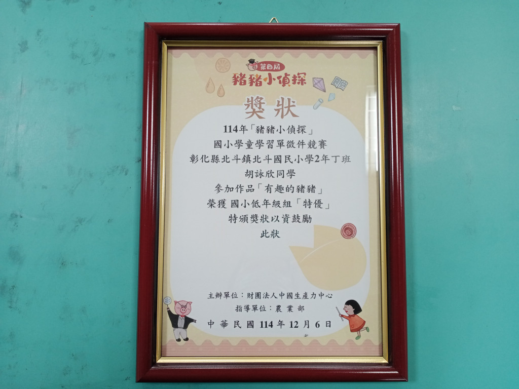 恭喜二丁胡詠欣、一丁楊璐曦參加114年「豬豬小偵探」國中小學習單徵件競賽活動,榮獲佳績